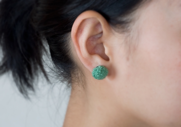 price : ¥2,400 color : 金、銀、白、黒、黄、青、赤、緑、ミント material:コットン、キュプラ、ポリエステル、真鍮(ピアスのポスト部分はチタン) ピアスかイヤリングをお選びいただけます。 同じ型のリングもご用意しています。 色見本はこちらから(クリックすると拡大)