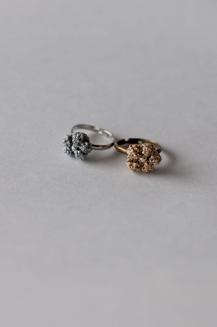 price : ¥2,700 color : 金、銀 material:キュプラ、ポリエステル、ボヘミアンビーズ、真鍮 size:3号(大きく調節可能)