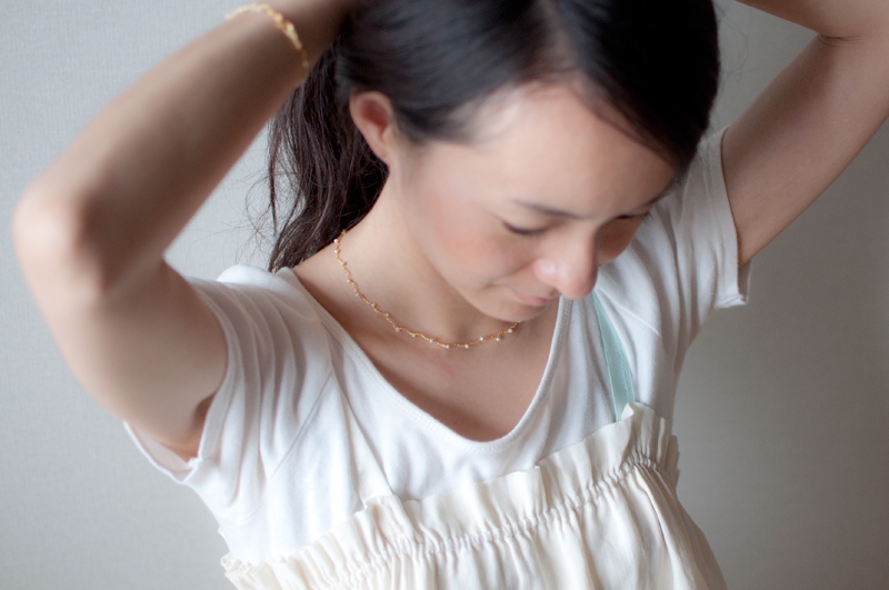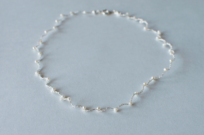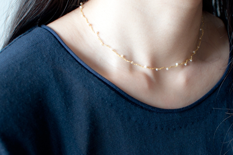 可憐な淡水パールのしずくがちりばめられたネックレス。