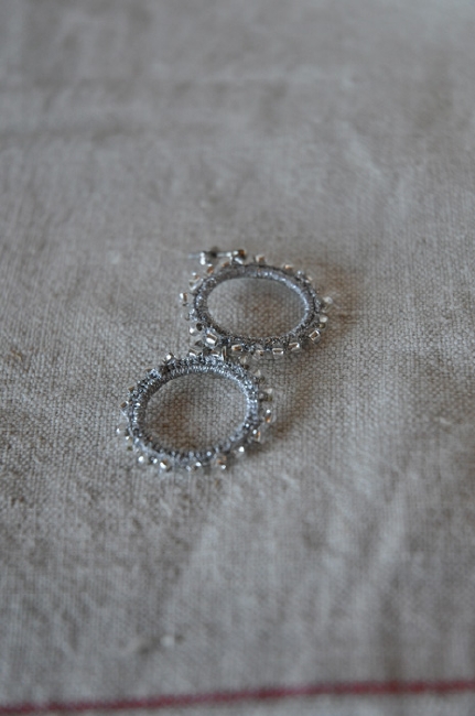 わっかの周りに、きらきらのビーズをあしらって。 揺れるたびにきらきらします。